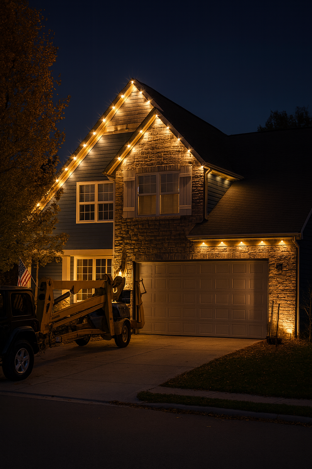 Our permanent lighting solutions offer year-round beauty and convenience, fully controllable via a smartphone app. Enjoy custom colors and effects for any occasion.